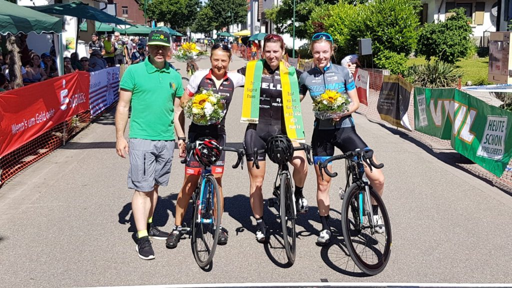 Am Sonntagmorgen ging es für Rebmann gleich weiter mit dem Rundstreckenrennen in Hofweier. Auch hier gingen die Frauen gemeinsam mit der männlichen Jugend auf die Runde. Durch den selektiven Kurs und das hohe Grundtempo konnten sich nur noch fünf Frauen im Feld behaupten. In der Schlussrunde fiel dann am Berg die Entscheidung. Rebmann konnte sich mit einigen Jugendfahrern und einer weiteren Frau absetzen. Im Sprint setzte sie sich durch und gewann somit das Rennen. Nächste Woche steht für die Frauen das nächste Bundesliagarennen in Merdingen an.